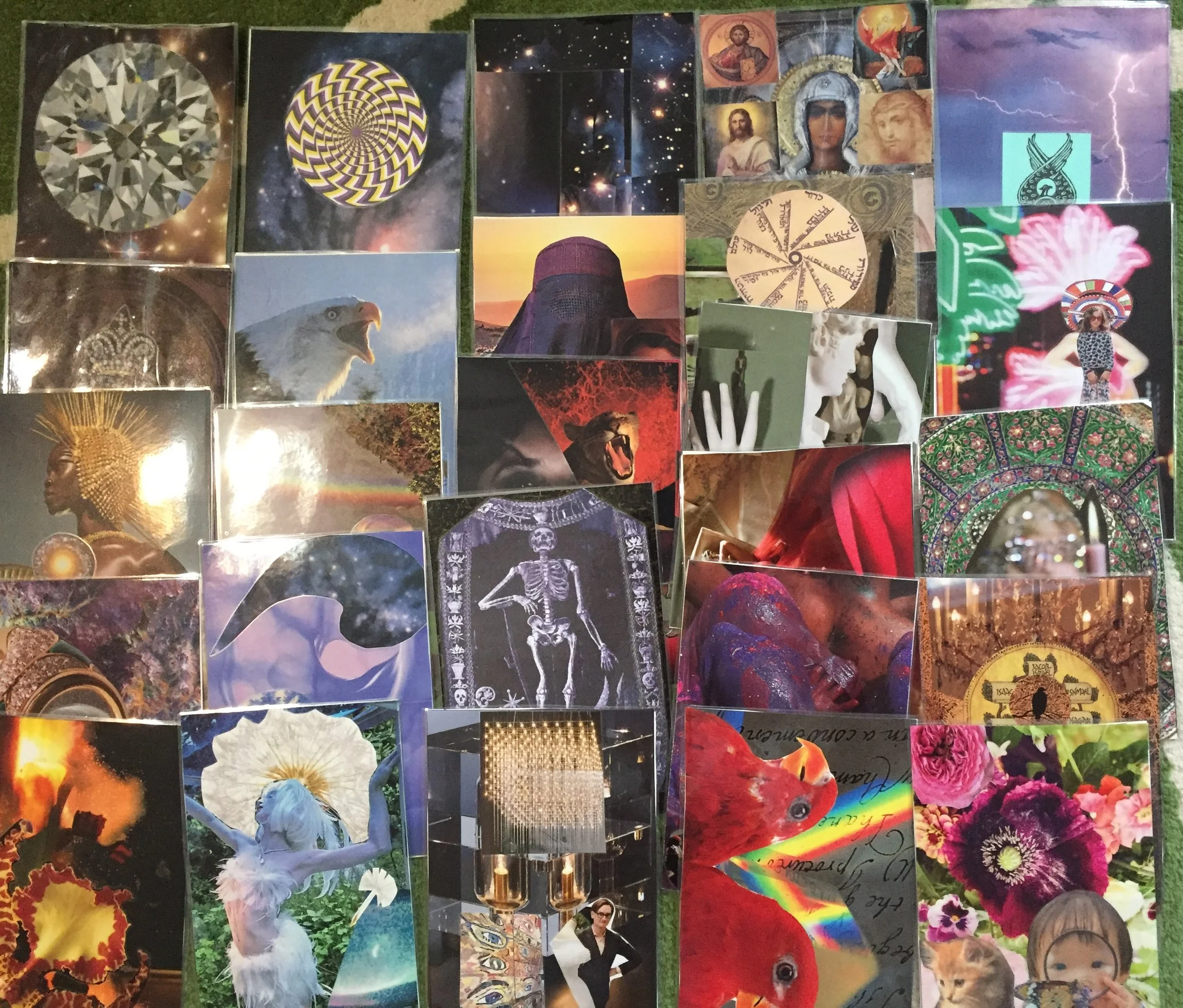 Here are some examples of self-guidance cards, based off Seena Frost who uses the term Soul Collage. Anne is due to be certified in the fall.All images are intuitively selected from images available, and created into a card. The first one we will do is a source card or God card, which I illustrated as a diamond in the universe, but yours can be what ever you want, because you are starting your deck. I have integrated these cards into my daily Christian practice asking for guidance about what parts of me can help or what parts of me get in the way.
